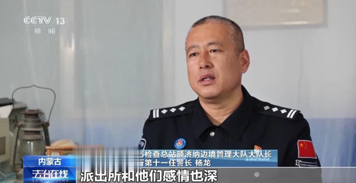内蒙古进出境边防检讨总站额济纳边境管制大队大队长算井子边境派出所第十一任警长杨龙:我来的技能剿袭的素质即是爱民护边,跟牧民的权衡即是老一辈那就传承下来的。像后头我们一个老额吉,我调出去亦然雷同,我也会且归看她,派出所和他们方法也深,他们跟派出所的方法也深。